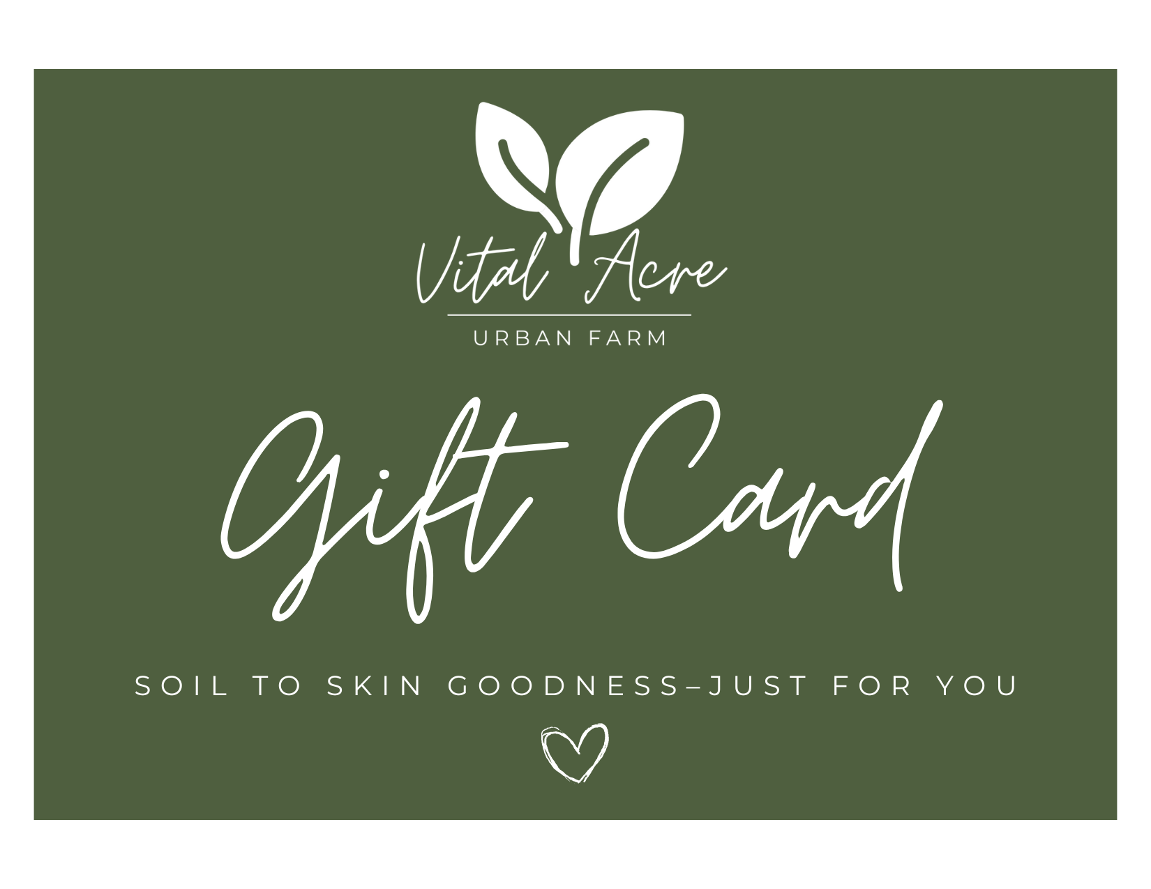 Give your favorite farm-ily member the gift of clean, sustainable skincare with a Vital Acre Gift Card — delivered instantly and redeemable for any of our farm-crafted skincare.